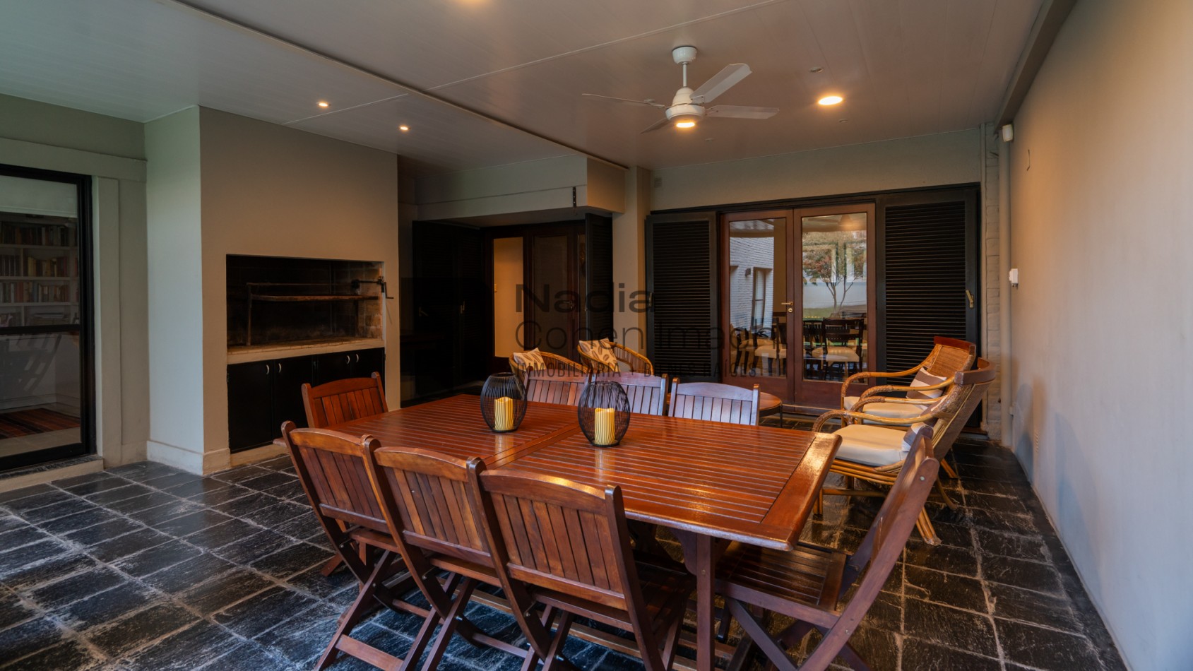Jardín, piscina y asador